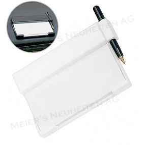 Notizblock mit Kugelschreiber und Selbstklebestreifen auf der Rückseite