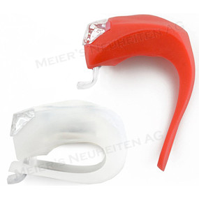 Silikon Lampe spritzwassergeschützt mit je 2 starken weissen LEDs mit zwei Blink- oder einer Dauerfunktion ausgestattet. Die ideale Lampe für das Fahrrad, Scooter, Kinderwagen, Joggen, Helm, Rucksack usw. Durch die Silikonhülle sind die Leuchten ideal vor Wettereinflüssen geschützt und lassen sich mit dem dicken Spanngummi super leicht befestigen.