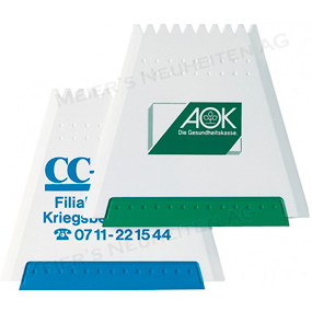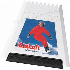 Trapez-Eiskratzer "Polar" mit grosser Werbefläche. Sehr auffällig ist die farbige Gummilippe, hierdurch kann sehr einfach eine Mehrfarbigkeit hergestellt werden, die diesen Eiskratzer sehr hochwertig erscheinen lässt.