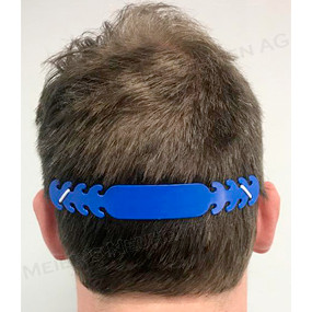 Mit dieser Halterung können Schutzmasken über längere Zeit bequem getragen werden. Die Halterung hat kleine Haken, um den Gummizug einer Maske straff zu halten und Schmerzen oder Beschwerden zu lindern, wenn der Gummizug in direktem Kontakt mit den Ohren des Trägers steht.