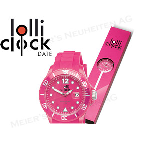 Lolliclock mit einem Kunststoffgehäuse mit drehbare Lünette, Silikonarmband, Japanisches 3-Zeiger Marken-Quarzuhrwerk bis 5ATM Wasserdicht. Bedruckbar mit Ihrem Logo. Weitere Ausführungen Stoppuhr, Datumsanzeige auf Anfrage. |