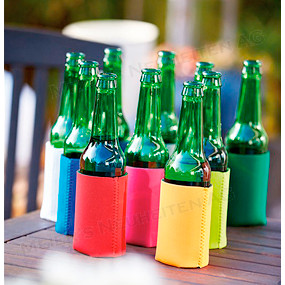 Kühlmanschette in Neopren-Optik geeignet für Flaschen und Dosen mit einem Durchmesser von ca. 7 cm.