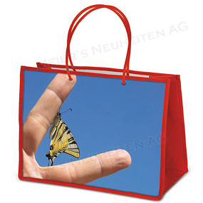 Bemerkungen: Die Taschen gibt es in verschiedenen Farben, Grössen und Materialien. Alle Tasche werden mit einem 4-farbigen Druck auf Laminierten Papier aussen auf beiden Seiten eingeschweisst!