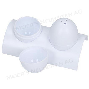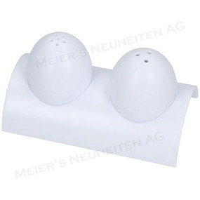 Set aus Salz- und Pfefferstreuer mit Halterung aus Kunststoff. Die Streuer verfügen über unterschiedlich grosse Löcher, um ein einfaches und kontrolliertes Streuen von Salz und Pfeffer (ohne Gewürze) zu ermöglichen. Die beiden Teile werden mittels Bajonettverschluss verbunden.