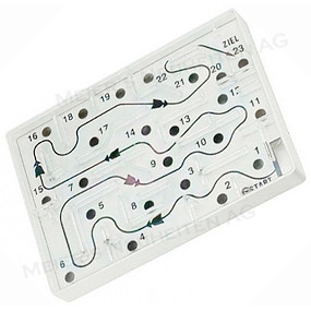 Mit Fingerspitzengefühl zum Ziel! Mit Spass am Spiel jongliert man die Kugel erfolgreich durch´s Labyrinth - von Punkt 1 bis zum Ziel. Individuellen 4-farbigen Druck über die komplette Spielfläche auf Anfrage möglich!