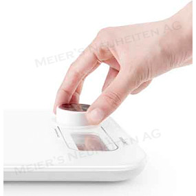 Bemerkungen: Die formschöne Küchenwaage benötigt keine Batterien, sondern funktioniert mithilfe eines Dynamo-Antriebs. So sparen Sie sich das lästige Wechseln und Entsorgen der Batterien. Einfach einmal drehen und schon haben Sie genug Energie für einen Wägevorgang von bis zu 5'000 g. Ob als Küchenwaage, Briefwaage oder Schmuckwaage, sie ist einfach genial und wägt auf ein Gramm genau! Selbstverständlich auch mit Tare-Funktion. Das LCD-Display mit den grossen Ziffern lässt sich leicht ablesen.